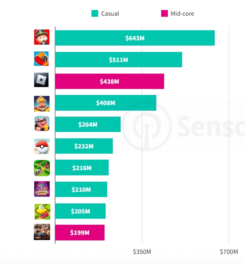 Since its launch in April 2023, Monopoly Go has made well over $3 billion in revenue, and it doesn’t show many signs of slowing. It was a major driver of the genre in 2023, helping improve Casino revenues by 18% (https://gameworldobserver.com/2024/04/08/state-of-mobile-gaming-2024-sensor-tower-report).