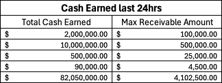 Setting a cap at 5% of highest earned cash for a player’s account in the last 24hrs.