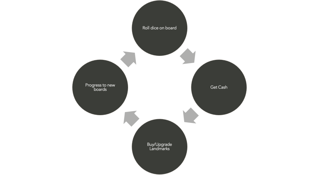 The core game loop of the game is fairly straightforward – rolling dice on the board is the core mechanism of interacting with gameplay. Various objectives like landing on rental squares, rolling doubles, earning rewards via LTM’s and more earn you cash which allows you to buy and upgrade landmarks. From there, you progress to a new board.